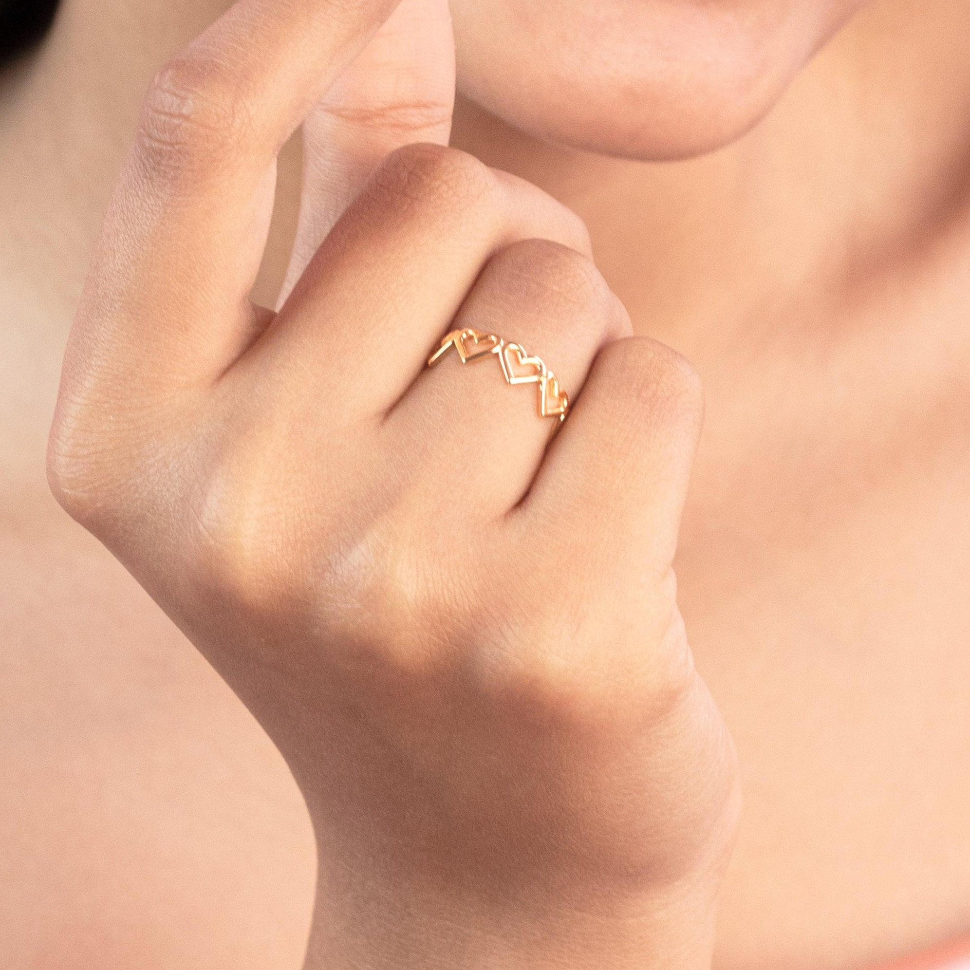 Golden Heartbeat 18 Karat Gold Plated 925 Silver Ring