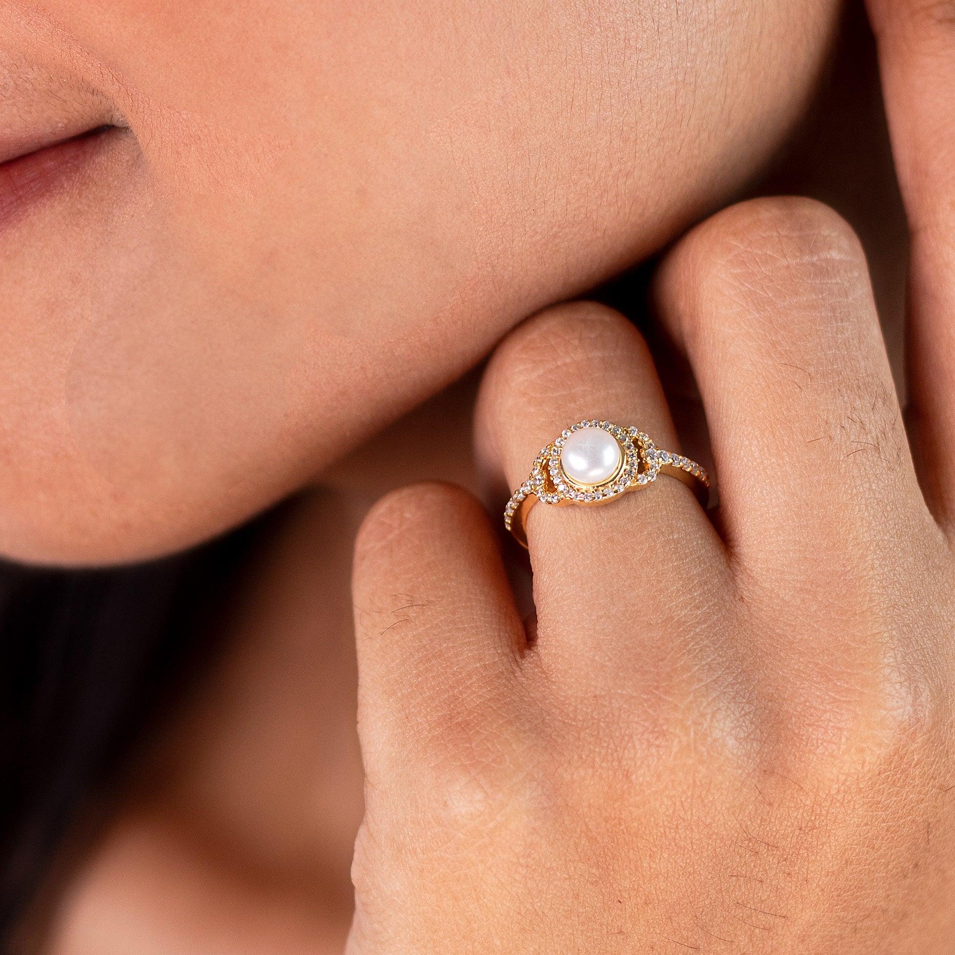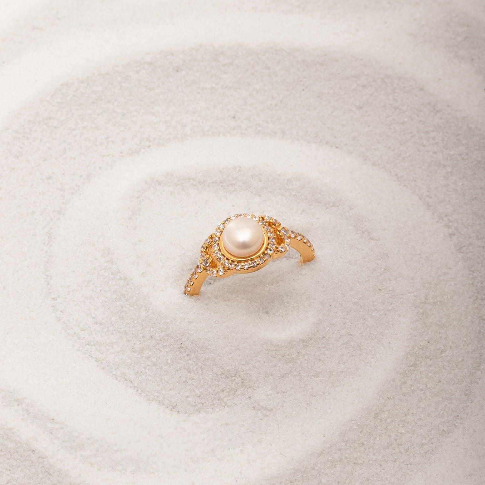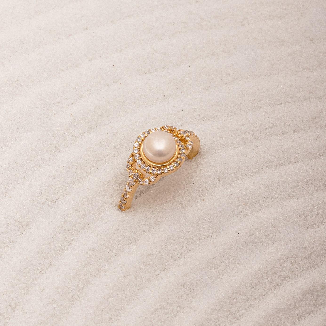 Opulent Pearl Halo 18K Gold Plated 925 Silver Ring