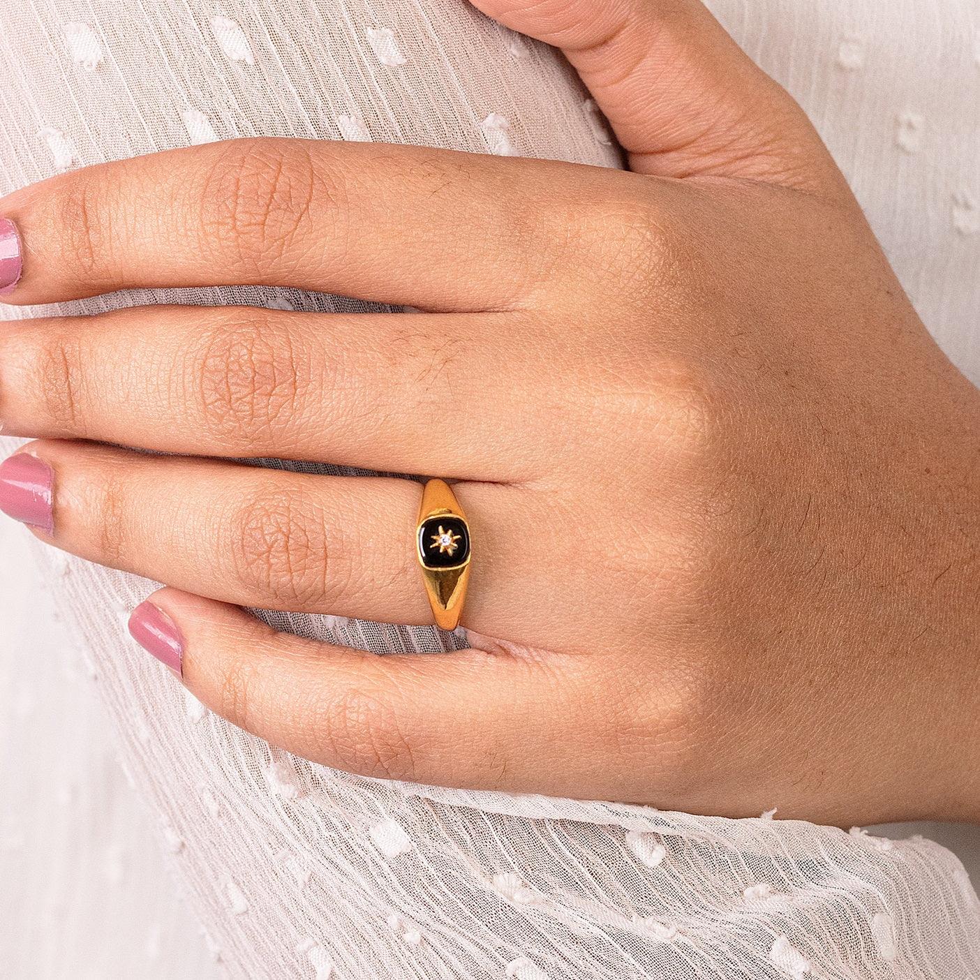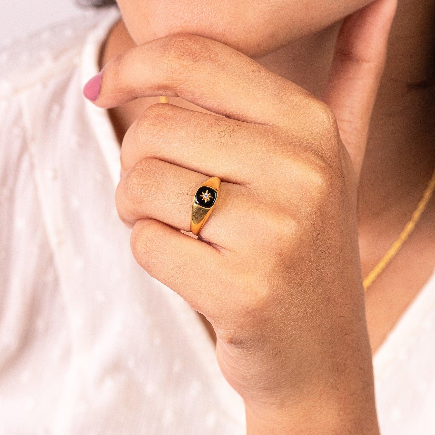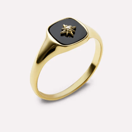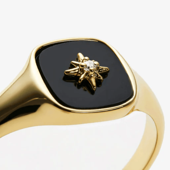 Stellar Onyx Signet Star 18K Gold Plated 925 Silver Ring